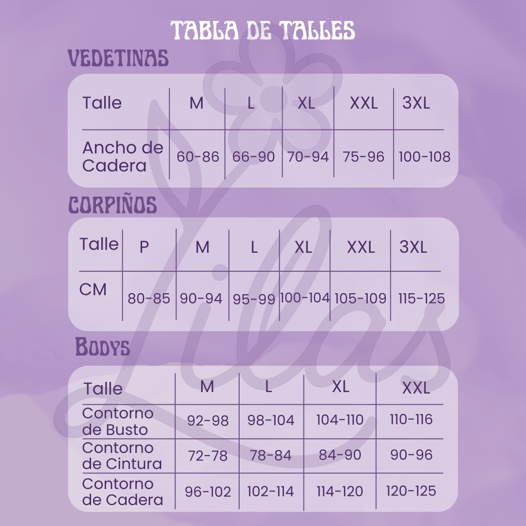 Medí el contorno de busto y cintura. Si estás entre dos talles, elegí según preferencia de compresión.